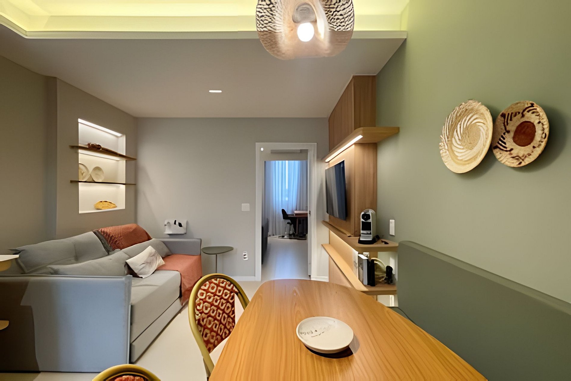 No quarto, você encontra uma suíte aconchegante com cama queen size, televisão, área de trabalho com escrivaninha e um amplo guarda-roupa para se sentir em casa. Além do banheiro da suíte, há também um banheiro social charmoso para maior comodidade. A cozinha é totalmente equipada com cooktop de indução, forno, micro-ondas e todos os utensílios necessários para quem gosta de cozinhar, sem falar na máquina de lavar e secar roupas, perfeita para quem vem passar mais tempo. A sala integrada à cozinha reúne o espaço de jantar e o de estar, com sofá-cama para receber amigos ou simplesmente relaxar depois de um dia de praia. O ambiente é moderno, iluminado e cheio de charme. Seja para trabalhar, descansar ou aproveitar cada instante do Rio, aqui você encontra o equilíbrio perfeito entre conforto e localização!
