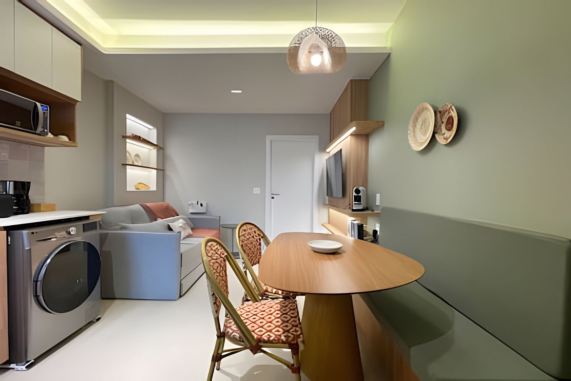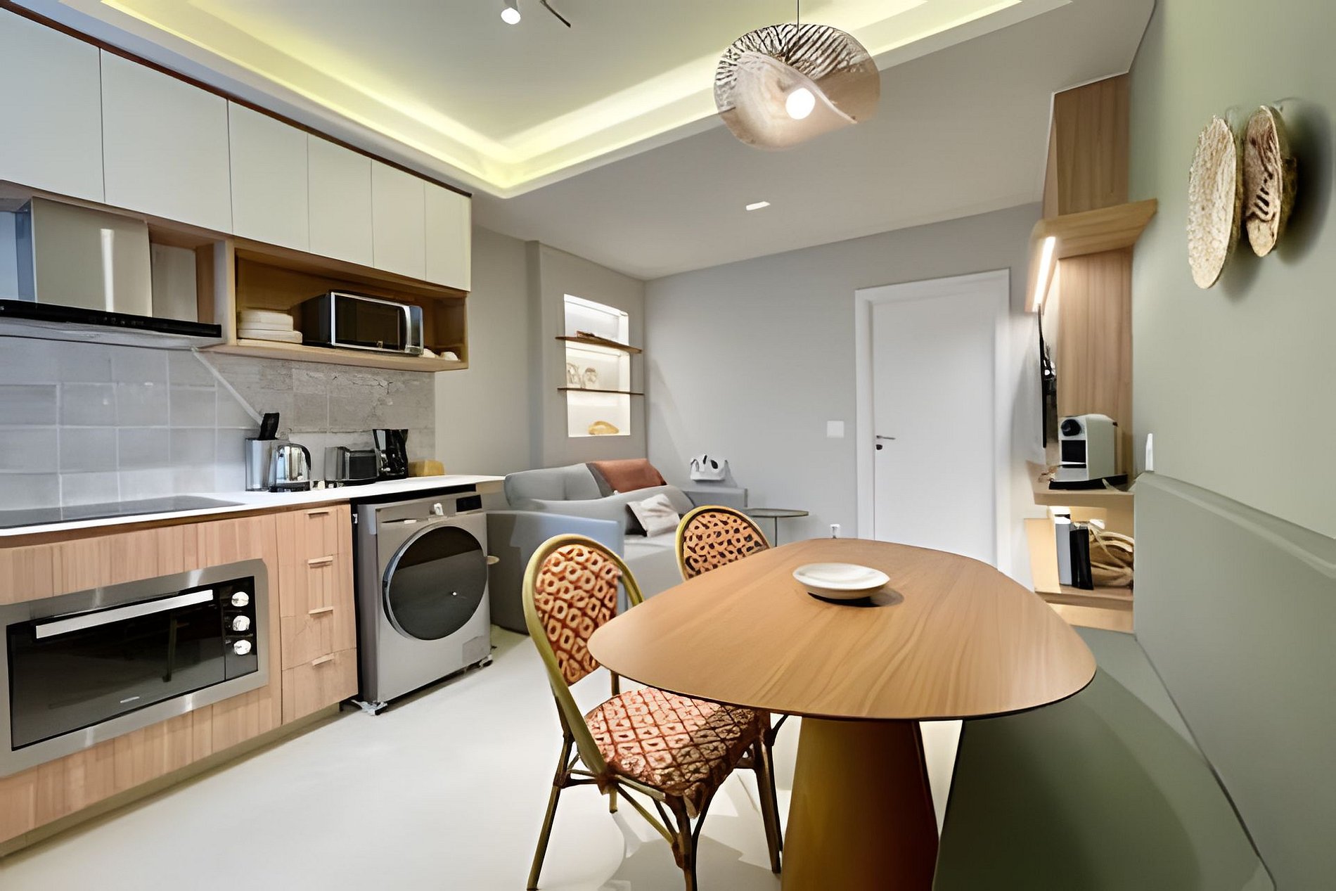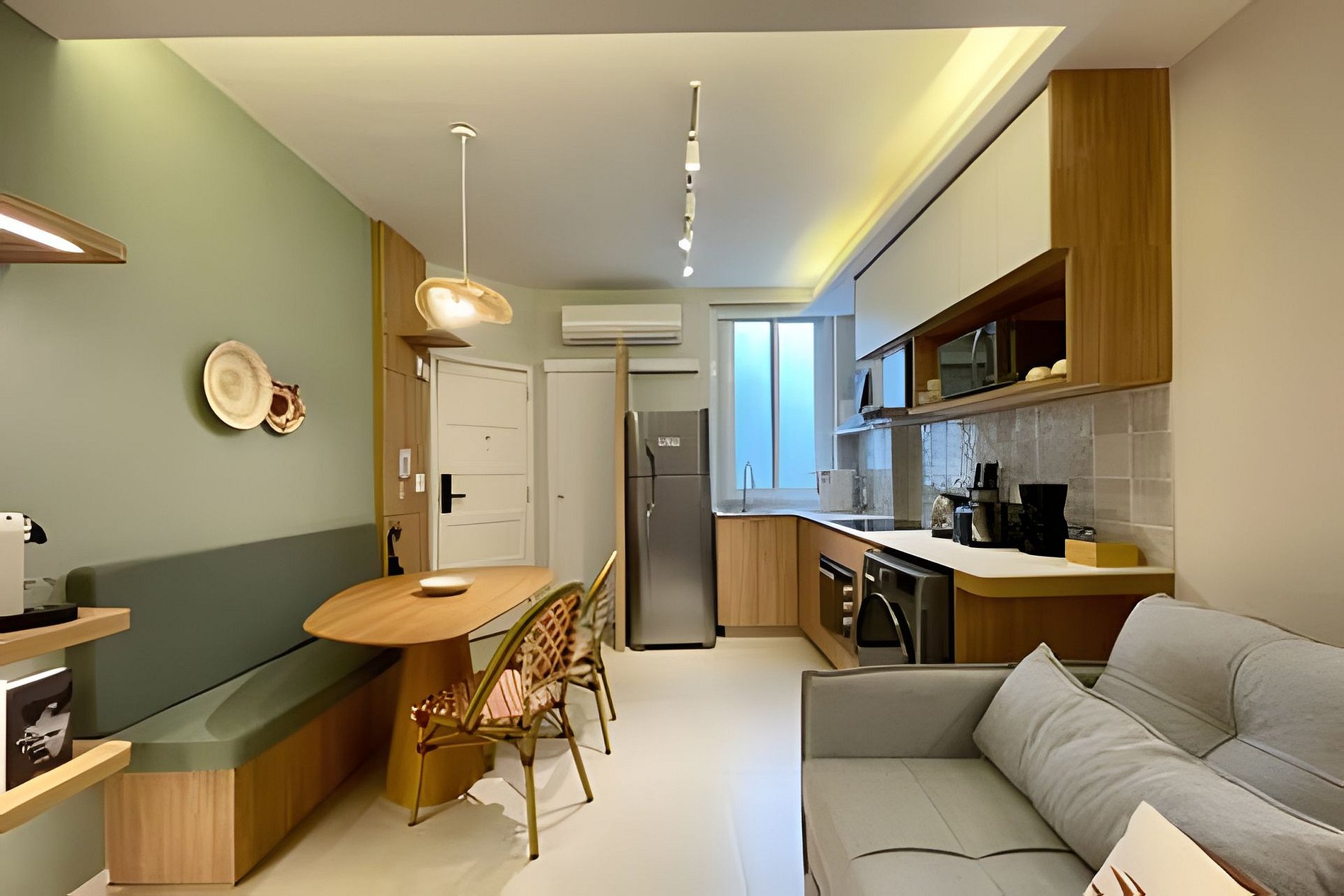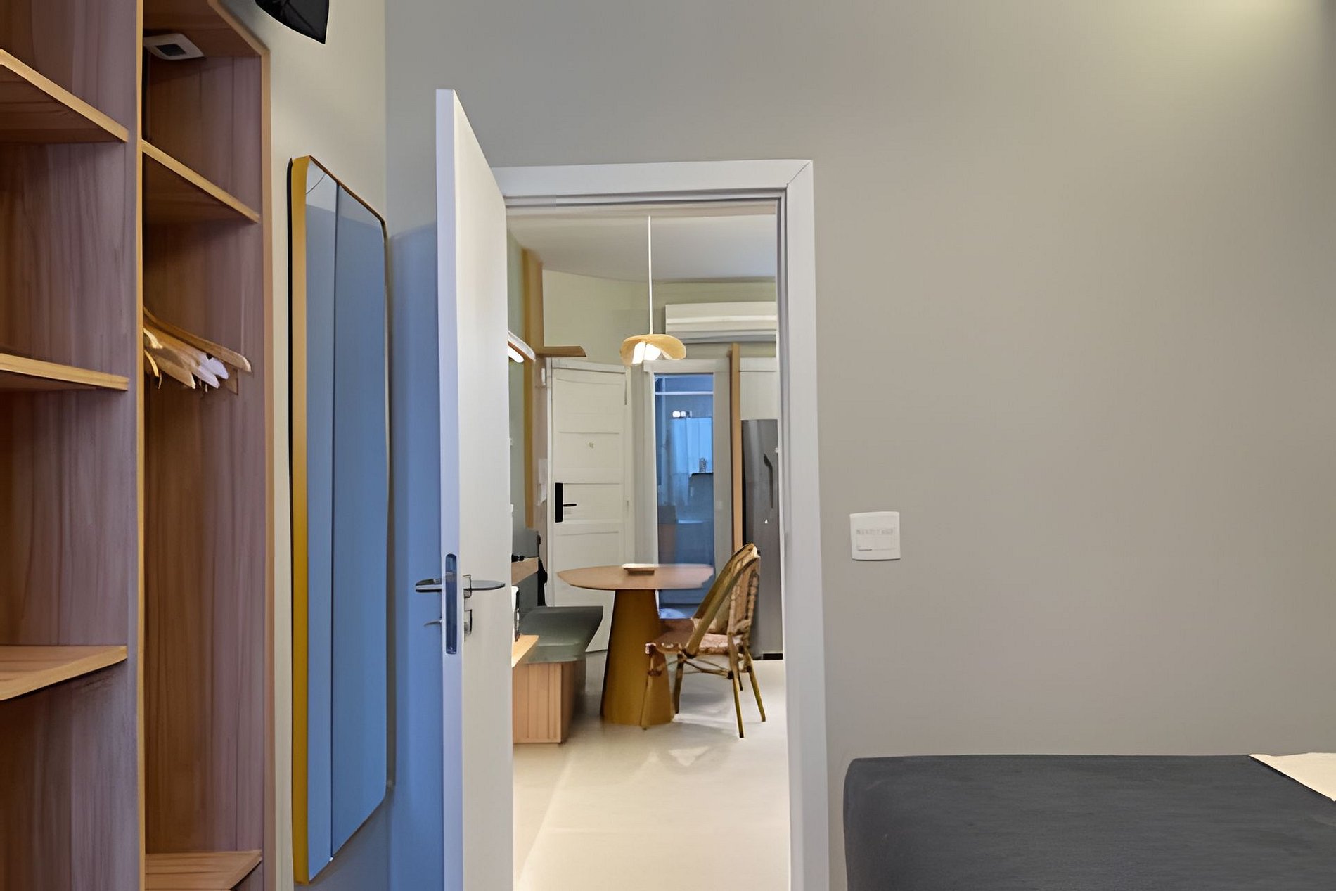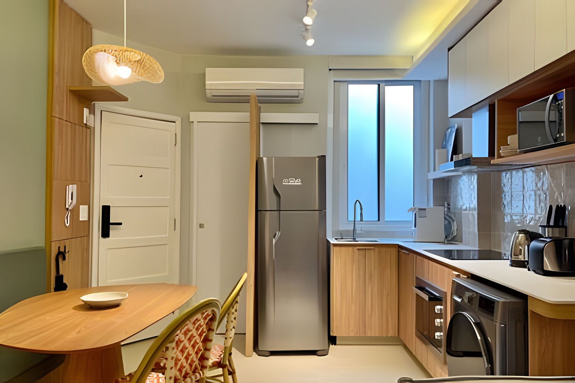 No quarto, você encontra uma suíte aconchegante com cama queen size, televisão, área de trabalho com escrivaninha e um amplo guarda-roupa para se sentir em casa. Além do banheiro da suíte, há também um banheiro social charmoso para maior comodidade. A cozinha é totalmente equipada com cooktop de indução, forno, micro-ondas e todos os utensílios necessários para quem gosta de cozinhar, sem falar na máquina de lavar e secar roupas, perfeita para quem vem passar mais tempo. A sala integrada à cozinha reúne o espaço de jantar e o de estar, com sofá-cama para receber amigos ou simplesmente relaxar depois de um dia de praia. O ambiente é moderno, iluminado e cheio de charme. Seja para trabalhar, descansar ou aproveitar cada instante do Rio, aqui você encontra o equilíbrio perfeito entre conforto e localização!