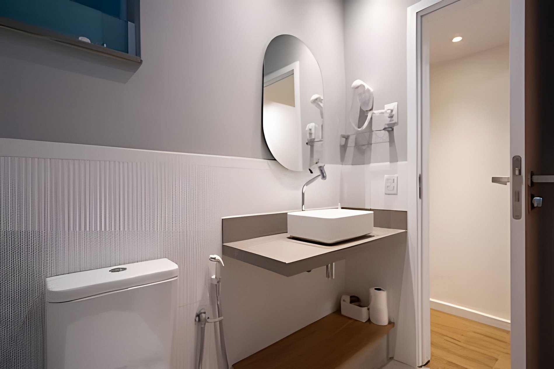 No banheiro, a estrela é a ducha italiana. Espaçosa e deliciosa, ela transforma o banho em um ritual diário relaxante.