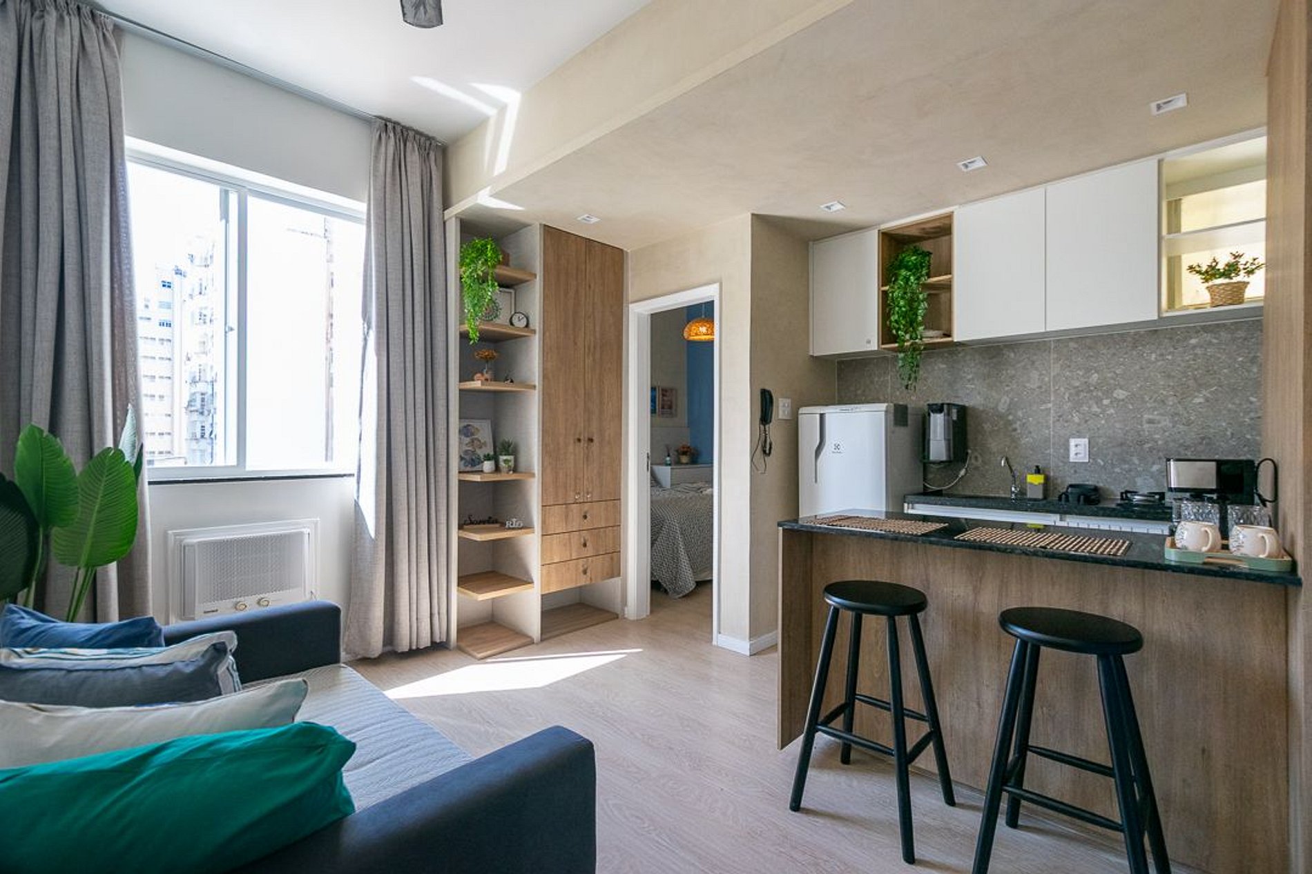Laris Rio!! Aconchegante apê em Copacabana, na Rua Santa Clara, a 8 min a pé da praia. Ideal para casais, conta com quarto com ar-condicionado, sala com TV, Wi-Fi, cozinha equipada e banheiro com chuveiro quente. Prédio com portaria 24 horas e excelente localização, perto de mercados, metrô e restaurantes. Perfeito para curtir o melhor do Rio com conforto e praticidade no coração de Copa!